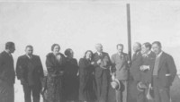 Augusto d'Halmar junto a Itala Roma, Mariano Latorre, Fernado Santiván y otras personas.