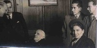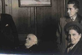 Augusto D´Halmar en casa de amigos [Fotografía]. [Santiago, Chile] : [Producción no identificada], cerca de 1946. 1 fotografía : Monocromo blanco y negro, papel mate ; 8 x 18 cm. .