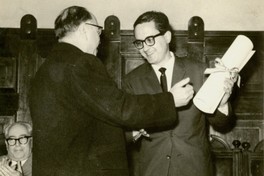 [Academia chilena de la lengua] [fotografía] Santiago, Chile : [Producción no identificada], 1963. 1 fotografía : Monocromo blanco y negro, 11,4 x 17,3 cm. .
