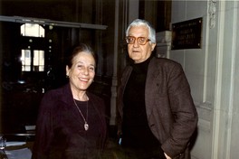 Miguel Arteche con la escritora Mónica Echeverría Yáñez en la Biblioteca Nacional de Chile.