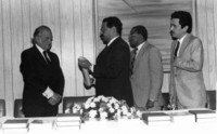 [Reconocimiento a Alberto Baeza] [fotografía]. Florida, Estados Unidos : [Producción no identificada], cerca de 1977. 1 fotografía : Monocromo Blanco y Negro, 12,5 x 17,5 cm. .