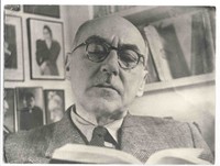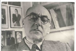 Retrato de Eduardo Barrios [Fotografía]. Santiago, Chile : [Producción no identificada], cerca de 1960. 1 fotografía : Monocromo blanco y negro, papel fotográfico mate ; 23,9 x 17,8 cm. .