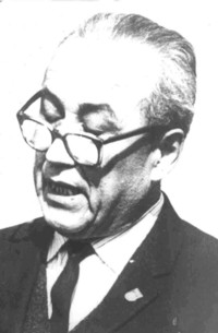 Homero Bascuñán [Fotografía]. Santiago, Chile : [Producción no identificada], 1960. 1 fotografía : Monocromo blanco y negro, papel fotográfico brillante ; 11,8 x 17,8 cm. .