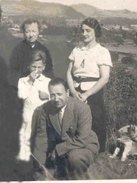 Alfonso Calderón y sus padres [fotografía]. Villa Alemana, Chile : [producción no identificada], 1936. 1 fotografía : Sepia 8 x 9 cm. .