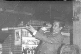 Rolando Cárdenas en la casa de Enrique Moletto, mirando por un catalejo.