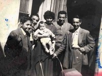 Rolando Cárdenas y familiares [fotografía]. Santiago, Chile : [producción no identificada], cerca de 1960. 1 fotografía : Monocromo blanco y negro, 9 x 12 cm. .