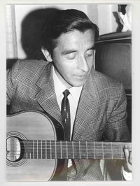 Rolando Cárdenas tocando guitarra en la casa de Enrique Moletto.
