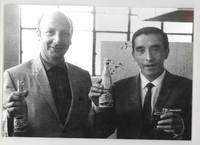 Rolando Cárdenas y Alfonso Calderón [fotografía]. La Serena, Chile : [producción no identificada], cerca de 1968. 1 fotografía : Monocromo blanco y negro, 23,5 x 16,6 cm. .