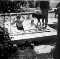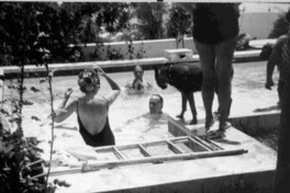 Camilo José Cela junto a su familia y amigos en la piscina de su casa.