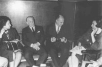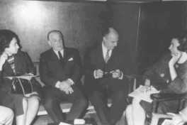 Conferencia de prensa [Fotografía]. [Santiago, Chile] : [Producción no identificada], 1965. 1 fotografía : Monocromo blanco y negro, papel mate ; 12 x 18 cm. .