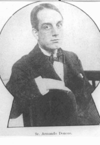 Armando Donoso [Fotografía]. [Santiago, Chile] : [Producción no identificada], cerca 1920. 1 fotografía : Monocromo blanco y negro, 12 x 17 cm. .