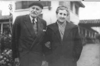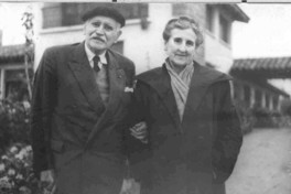 Diego Dublé Urrutia con su esposa [Fotografía]. [Llolleo, Chile] ; [Producción no identificada], cerca de 1961. 1 fotografía : Monocromo blanco y negro, papel mate ; 11,7 x 18 cm. .