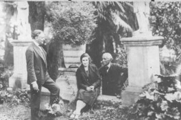 Diego Dublé Urrutia con su esposa Mercedes y el pintor Juan Francisco González [Fotografía]. [San Fernando, Chile] ; [Producción no identificada], cerca de 1930. 1 fotografía : Monocromo blanco y negro, papel mate ; 11,6 x 17,9 cm. .