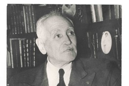 Diego Dublé Urrutia [Fotografía]. [Santiago, Chile] ; [Producción no identificada], cerca de 1958. 1 fotografía : Monocromo blanco y negro, papel mate ; 17,7 x 23,8 cm. .