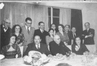 Luis Durand junto a Luis Merino, Eduado Knockaert, María Santander, Alberto Montiel, Alfredo Montiel y Teresa Montt, en la Embajada de El Salvador.