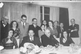 Ceremonia en la Embajada de El Salvador [Fotografía]. [Santiago, Chile] ; [Producción no identificada], Octubre 1952. 1 fotografía : Monocromo blanco y negro, papel mate ; 17 x 11,5 cm. .