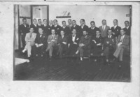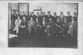 Reunión de escritores [Fotografía]. [Santiago, Chile] ; [Producción no identificada], cerca 1950. 1 fotografía : Monocromo blanco y negro, papel mate ; 12 x 18 cm. .