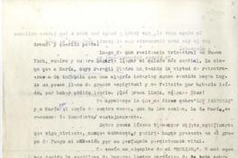 Le comenta que estuvo viviendo en Nueva York tres meses. Le envía saludos al grupo "Fuego" por su persistencia vital. Habla de ser fiel a la vocación de escribir y que es por lo cual siguen viviendo.Informa que tiene tres libros sin publicar, algunos tomos de prosa y crítica teatral. Le envía agradecimientos a María por "Perejil piedra".