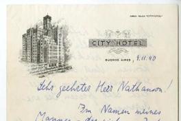[Carta] 1940 noviembre 9, Buenos Aires, Argentina [a Lilo Nathanson] [manuscrito] Lotte Zweig.
