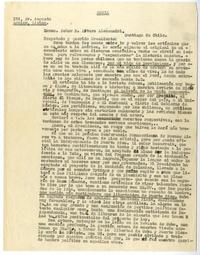 Portugal [al] Excelentisimo Señor D. Arturo Alessandri carta, 1936, [manuscrito] Gabriela Mistral.