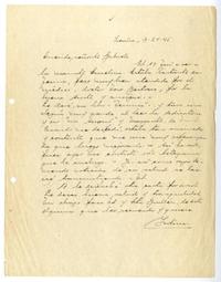 Vicuña, Chile [a] Gabriela Mistral carta, 1945, [manuscrito] Isolina Barraza de Estay.
