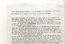 Fotocopia de carta enviada por Gabriela Mistral con motivo de la muerte del padre de Isolina Barraza.