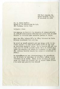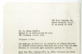 California [a] Jaime Benítez, Rector de la Universidad de Puerto Rico, Río Piedras carta, 1948, [manuscrito] Secretaria.
