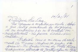Cudahy, Wisconsin, Estados Unidos [a] Magda Arce carta, 1985, [manuscrito] Fresia Brenes de Hilarov.