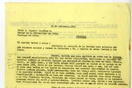 Santa Bárbara [a] Eugenio González R., Rector de la Universidad de Chile, Santiago, Chile. carta, 1965, [manuscrito] Magda Arce.