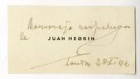 España [a] Gabriela Mistral. Tarjeta, 1946, [manuscrito] / Juan Negrin. 1 tarjeta ; 4 x 8 cm. .