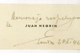 España [a] Gabriela Mistral. Tarjeta, 1946, [manuscrito] Juan Negrin.