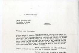 California [a] Señor Radomiro Tomic, Embajador de Chile, Washington, D.C., EE.UU. carta, 1965, [manuscrito] Magda Arce.