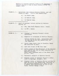 Listado del material literario de Gabriela Mistral encontrado en Santa Barbara.