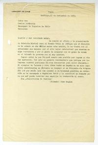 Santiago, Chile [al] Señor Don Carlos Errázuriz Encargado de Negocios de Chile, Estocolmo, Suecia. carta, 1939, [manuscrito] Juan Mujica de la Fuente