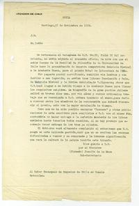 Santiago, Chile [a] Carlos Errázuriz Encargado de Negocios de Chile, Estocolmo, Suecia carta, 1939, [manuscrito] Joselín de la Maza.