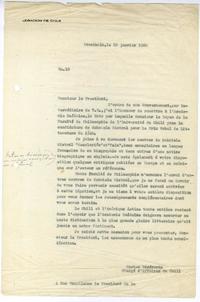 Stockholm, Sweden [a] Monsieur le President, [Stockholm], [Sweden]. carta, 1940, [manuscrito] / Carlos Errázuriz Ovalle. 1 hoja ; 33 cm. .