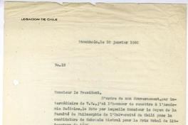 Informa del envío de la carta del Decano de la Facultad de Filosofía de la Universidad de Chile por la candidatura de Gabriela Mistral al Premio Nobel de 1940.