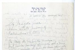 San Juan, Puerto Rico [a] Magda Arce, Ohio State University Carta, 1945, [manuscrito] Pedro Juan Labarthe.