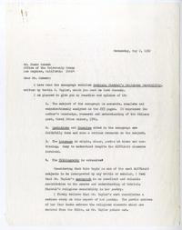 La remitente envía su opinión sobre el trabajo "Gabriela Mistral's Religius Sensibility" de Martin C. Taylor.
