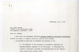 Estados Unidos [a] James Kubeck, Office of the University Press, Los Angeles, California, [EE.UU.] carta, 1967 Mayo 2, [manuscrito] Magda Arce.
