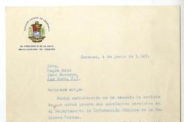 Caracas, Venezuela [a] Magda Arce, New York carta, 1945 junio 4, [manuscrito] Rómulo Betancourt.