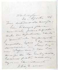 Washington [a] Magda Arce carta, 1946 , [manuscrito] Humberto Díaz Casanueva.