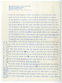 Sao Paulo, Brasil [a] Magda Arce, Santiago, Chile. carta, 1943 julio 18, [manuscrito] / Fidelino de Figueiredo. 1 hoja ; 28 cm. .