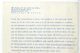 Sao Paulo, Brasil [a] Magda Arce, Santiago, Chile. carta, 1943 julio 18, [manuscrito] Fidelino de Figueiredo.
