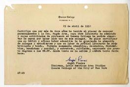 Flushing, New York [a] Magda Arce carta, 1952 abril 25, [manuscrito] Angel Flores.
