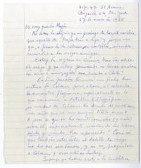New York [a] Magda Arce, Santiago, Chile Carta, 1955 enero 27, [manuscrito] Angel Flores