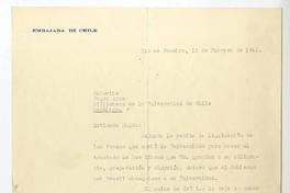 Rio de Janeiro, Brasil [a] Magda Arce, Biblioteca de la Universidad de Chile, Santiago, Chile Carta, 1943 febreo 27, [manuscrito] Gabriel González Videla.