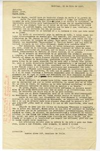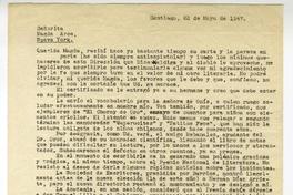 Santiago, Chile [a] Magda Arce, Nueva York Carta, 1947 , [manuscrito] Mariano Latorre.