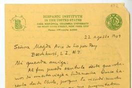 New York [a] Magda Arce de Lopez Rey Carta, 1949 agosto 22, [manuscrito] Federico de Onís.