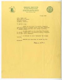 El remitente acusa recibo de carta del 17 de abril e informa a Magda Arce que le enviará los ocho ejemplares de la Revista Hispánica Moderna en que aparece su estudio sobre Mariano Latorre, y también el libro "Zurzulita".